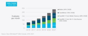 En 2017, les réseaux WiFi sont la méthode d’accès par excellence pour la connectivité à l’internet. Plus de 60 % du trafic vers l’internet passe par un réseau WiFi et cela sera de 73% en 2021, selon les données publié par Cisco dans le papier : The Zettabyte Era : Trends and Analysis.